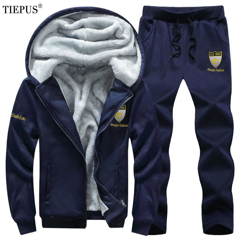 Free Shipping 60% OFF TIEPUS New Winter Cashmere Sporting Suit Hats Jacket+pants Warm Suit Sporting Suit Men Running Set Sportswear size M~4XL are attractive to buyers from around the world
